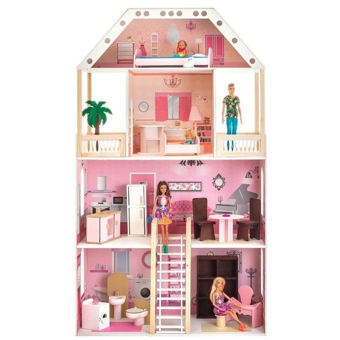 Особенность: Домик, выполнен в классическом стиле, в рзовом цвете. Игрушку отличает нежный, пастельный принт с использованием различных цветовых гамм по дереву внутри дома, мощное наполнение аксессуарами.
