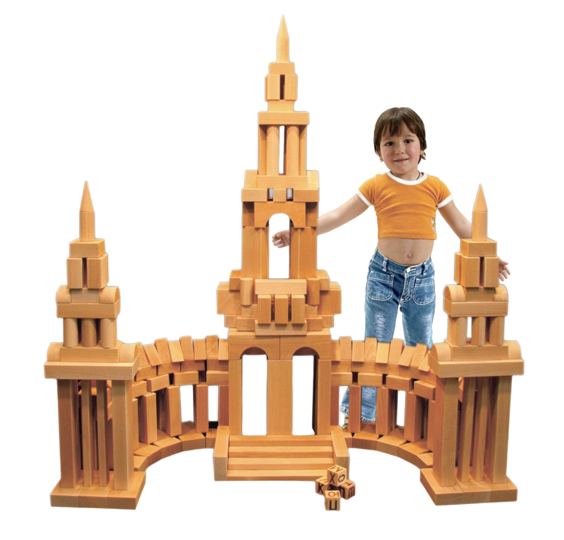 В наборе: 256 цветных деталей в 4-х деревянных ящиках.