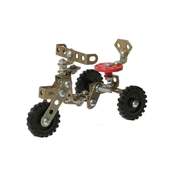 Металлический конструктор формирует начальные инженерные навыки и активно стимулирует техническое мышление. При сборке можно использовать дополнительные материалы: картон, жесть, проволоку, нитки. Замечательное образовательное решение для мальчиков!