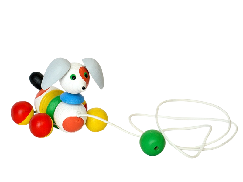 Небольшая каталка Щенок выполнена из экологически чистой древесины и раскрашена нетоксичными красками вручную.