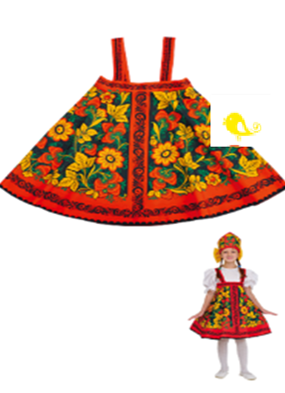 Сарафан с хохломской росписью выполнен из габардина.