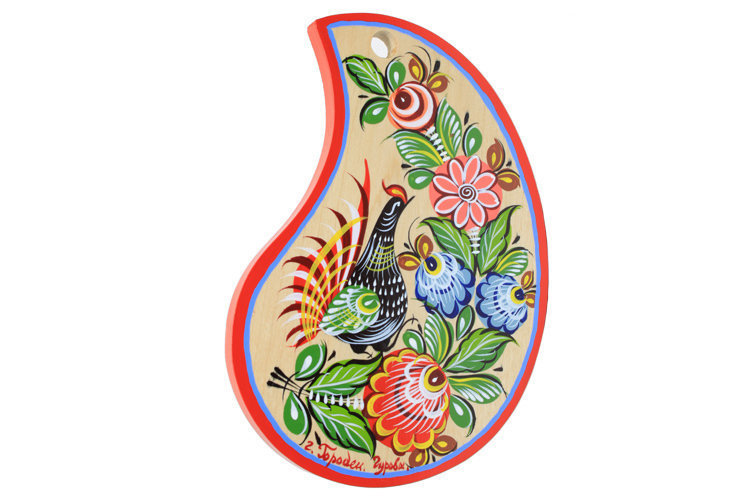 Декоративная доска с ручной росписью может служить предметом интерьера для творческого уголка. Ее можно использовать в качестве демонстрационного материала при изучении дошкольниками народных промыслов и предметов быта наших предков.