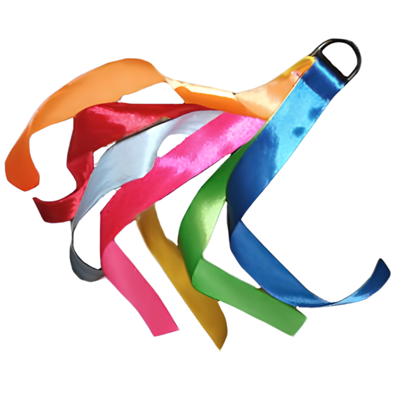 Цветные атласные ленточки на одном полу-кольце прекрасно подойдут для занятий художественной гимнастикой или хореографией в детском саду.