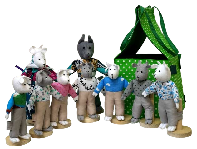 Набор кукол известной сказки предназначен для театрально-постановочной деятельности дошкольников. Достаточно надеть петли на ногах у кукол на детские пальчики, и кукла может шагать.